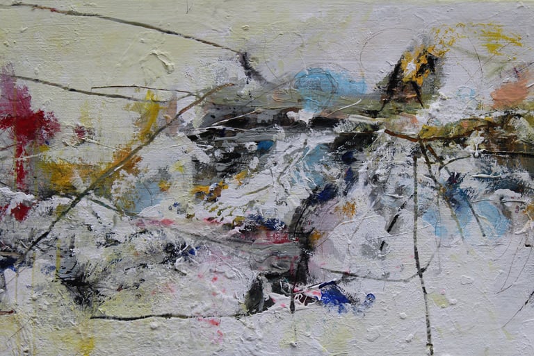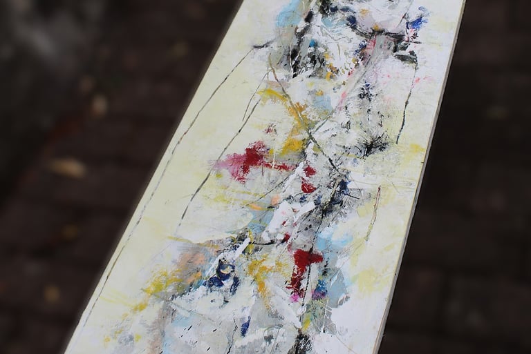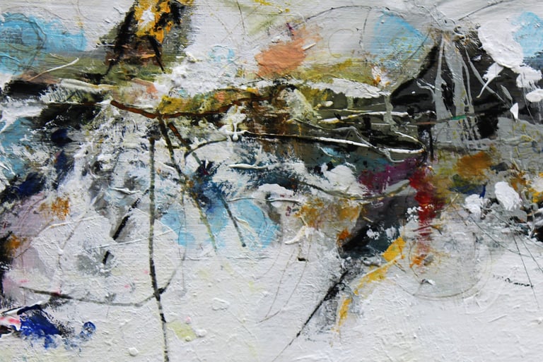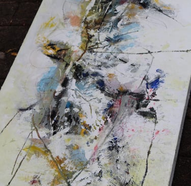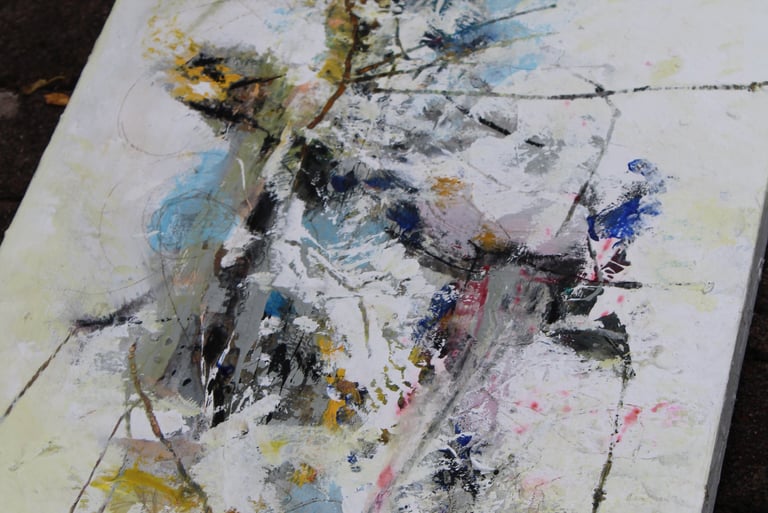 "In meinen abstrakten Arbeiten setze ich auf einen intuitiven Malprozess, bei dem Farbe und Form direkt aus dem Moment entstehen. Schicht um Schicht trage ich Acryl, Öl oder andere Medien auf die Leinwand, wodurch eine lebendige Textur und eine dynamische Komposition entstehen."