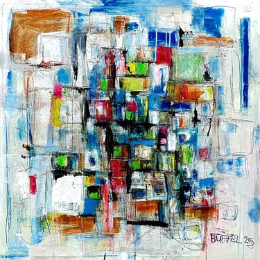 Step into a world where color, texture, and scale converge. “ihr da oben” is a commanding large-format work by Christian Büffel, designed to transform any space with its dynamic presence. This piece fuses layered mixed media techniques—bold brushwork, intricate textures, and vibrant hues—creating a visual dialogue that shifts with every glance.
